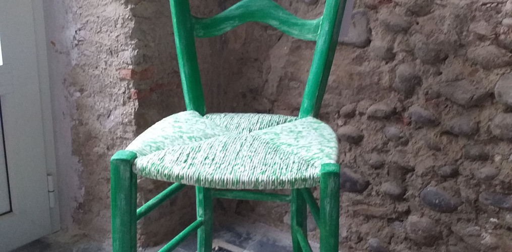 Ce stage propose de découvrir la technique du rempaillage d’une chaise en torons de tissus (bandes de tissus torsadées).