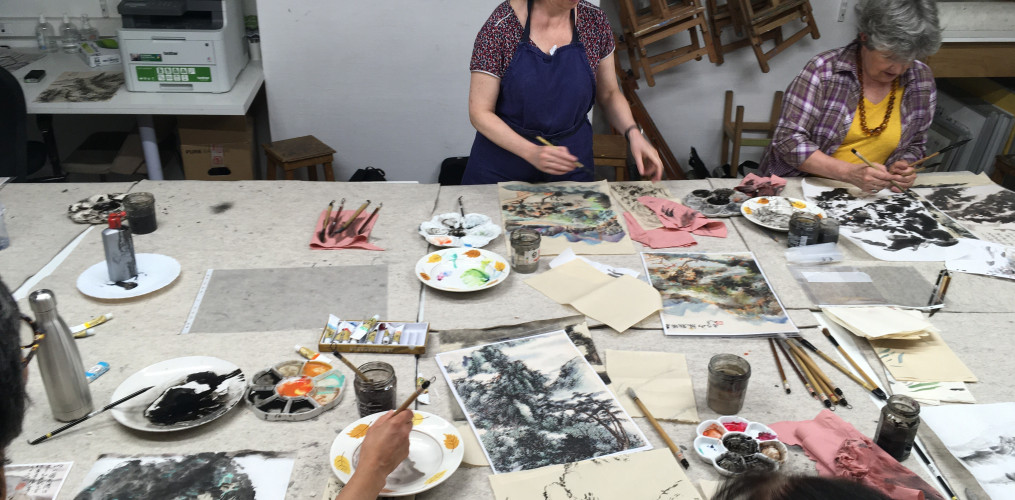 Les participants commenceront par découvrir les matériaux traditionnels, notamment la soie, le papier Xuan, les pinceaux et les pigments.