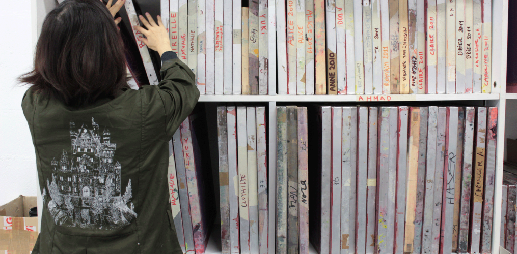L’atelier de sérigraphie animé par Ahmad Kaddour s’adresse aux adultes de tous niveaux désireux d’acquérir des savoir-faire. Les inscrits sont initiés à toutes les techniques de la discipline : tout d’abord, la préparation du typon consistant à reproduire un document original (dessins, photos ou documents graphiques) sur un support transparent (calque, rhodoïd, etc.) puis la préparation de l’écran, l’insolation et le dépouillement et enfin l’impression. Chacune de ces étapes est une pratique ouverte exigeant regard, justesse et choix, où le savoir-faire s’appuie sur le développement de la créativité et aboutit à la réalisation d’affiches, de logos, de livres d’artiste imprimés sur différents supports. Cet atelier invite chaque participant à interroger le quotidien pour construire un autre regard.